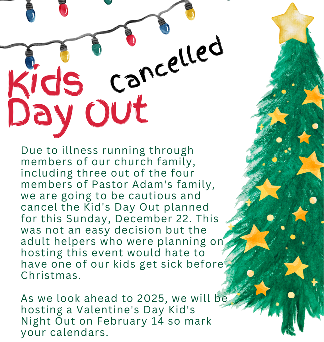 Due to illness running through members of our church family we will cancel this event to do our best to preserve the health of our children as Christmas is near. We will have an event on Valentines night. Stay tuned.