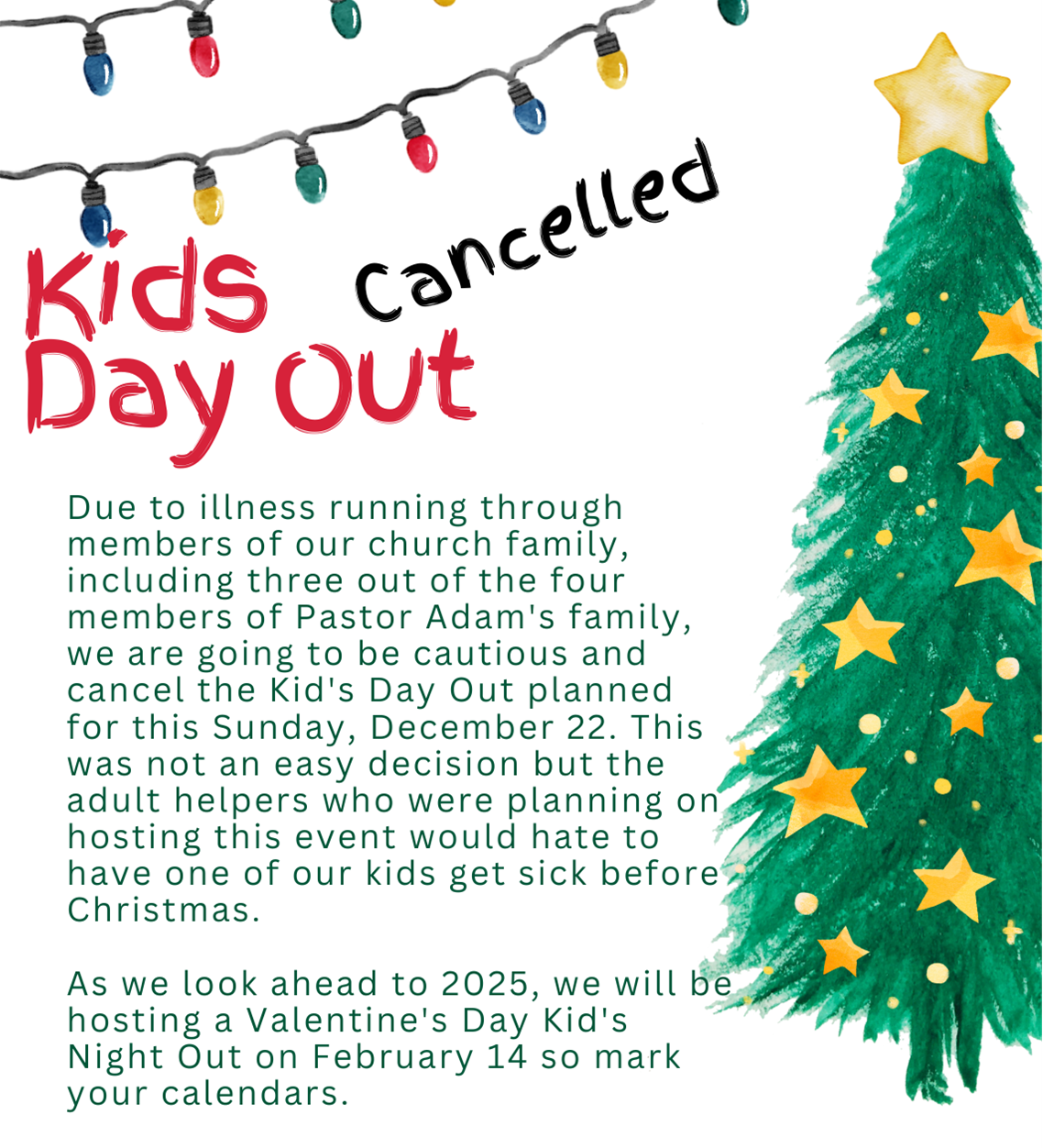 Due to illness running through members of our church family we will cancel this event to do our best to preserve the health of our children as Christmas is near. We will have an event on Valentines night. Stay tuned.